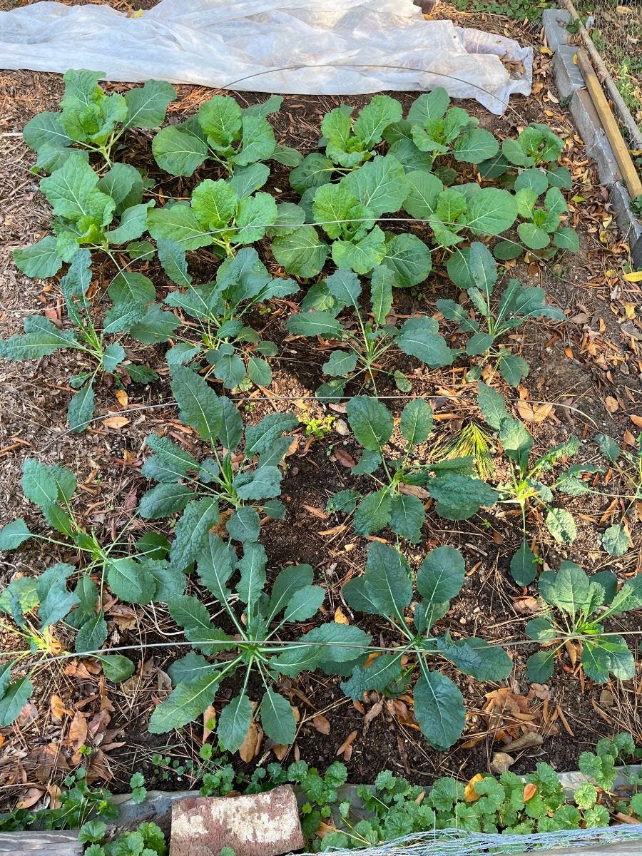 Kale at the bottom and Cabbage on top. Both are coming along nicely!