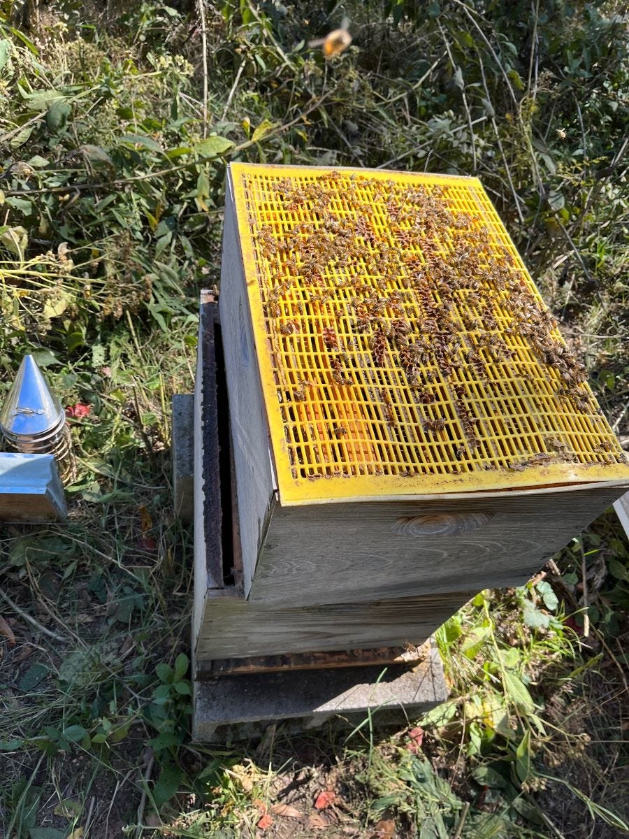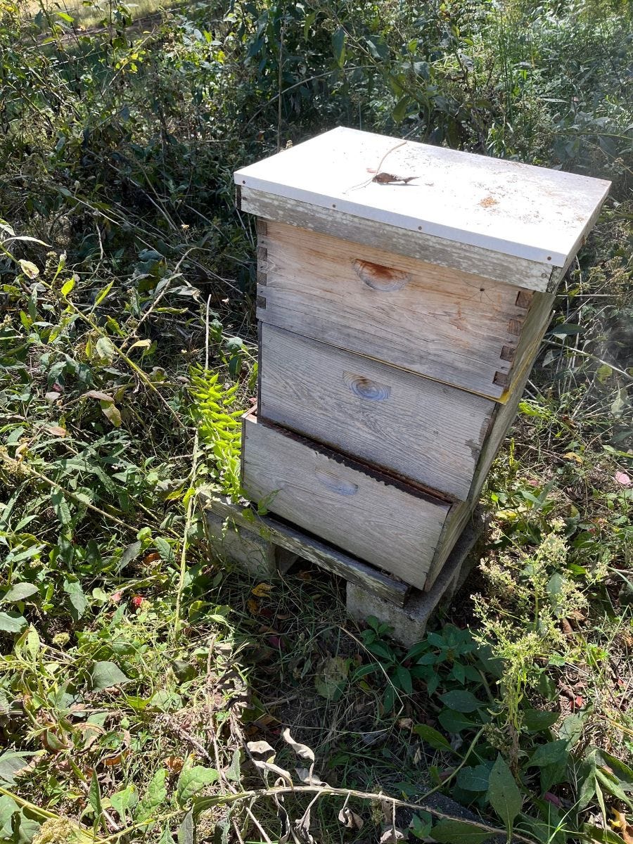 And that's about it. I don't spray. I don't treat. I don't open up and check the queen. I don't prevent bees from swarming and leaving the hive. And because I am not at the farm during much of the growing season, my hive is often barely visible due to grass and brush. It's had water up to its 2nd box and experiences sub-freezing temperatures annually without protection.