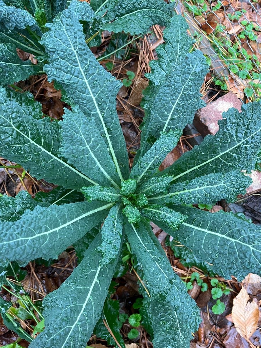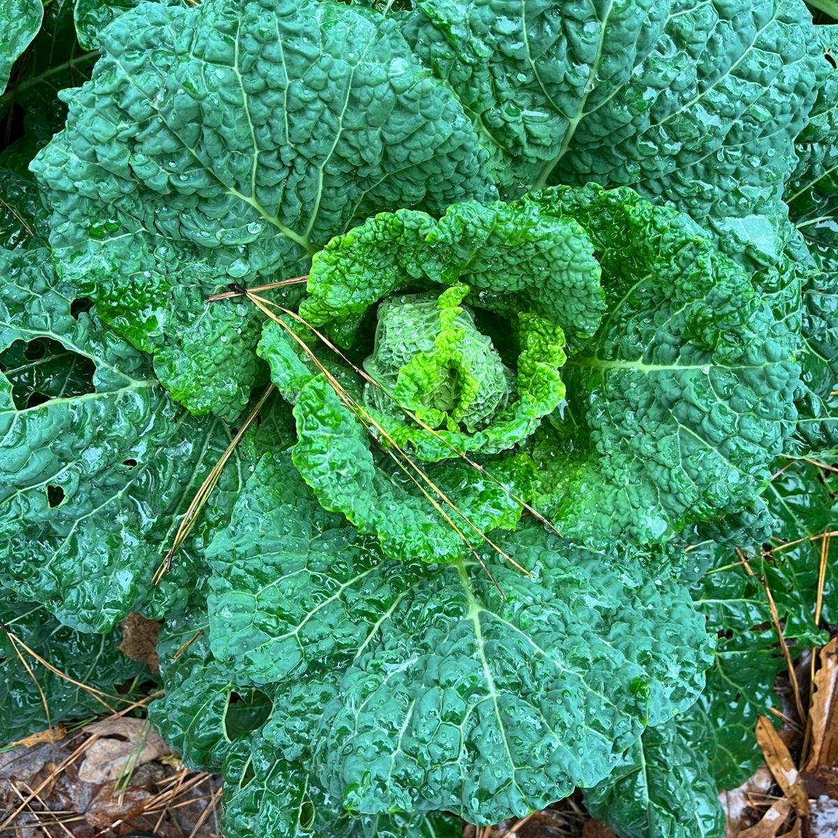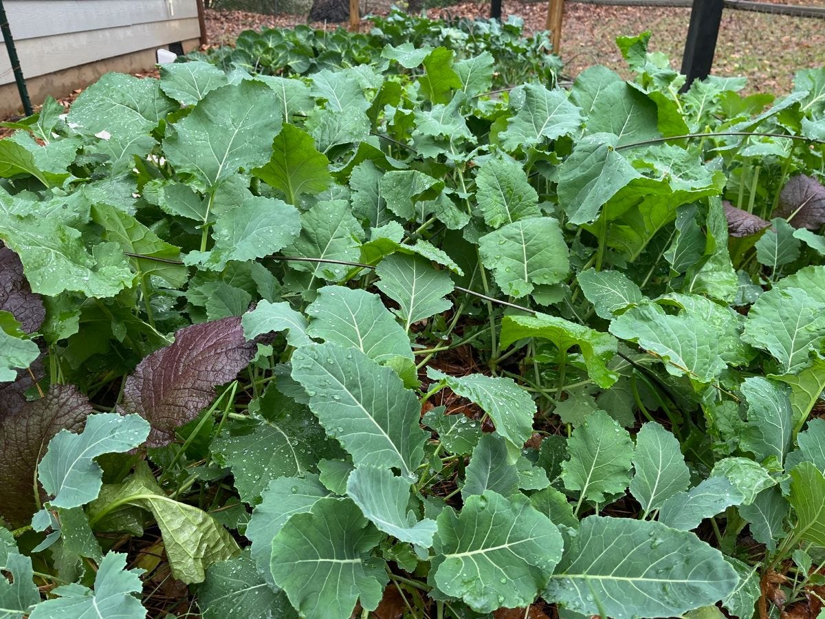 You might have read in previous letters and podcasts where I mentioned the fall/winter garden being my favorite. The reasons are many. No weeding. No bugs. No summer heat and humidity. And fresh, tender, tasty greens for salads... for weeks. Right now, the garden is a blend of vibrant greens with a few reds mixed in. The broccoli and cabbage are forming heads, the kale is a deep green, and the mustards carry a spicy punch that brings every side salad to life.