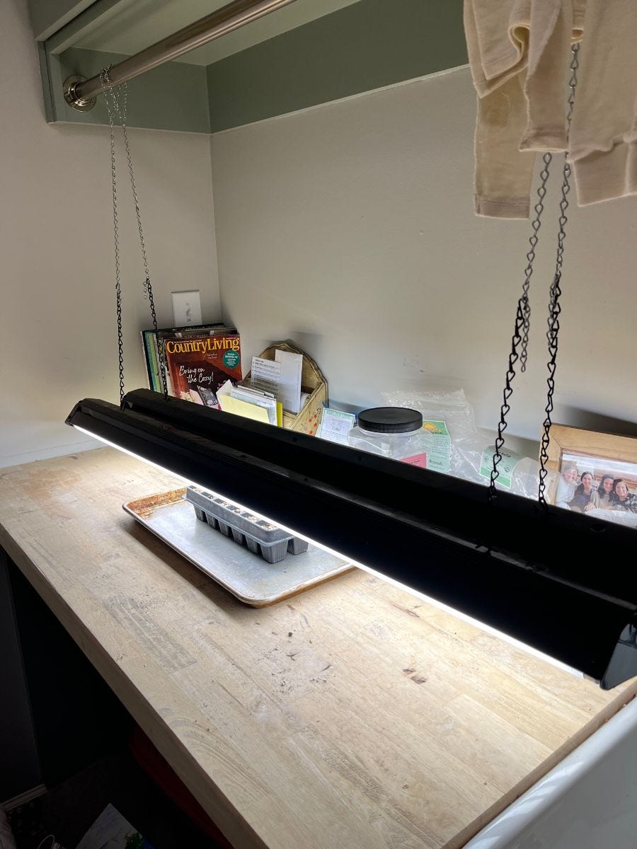 Our humble little seed starting station.
