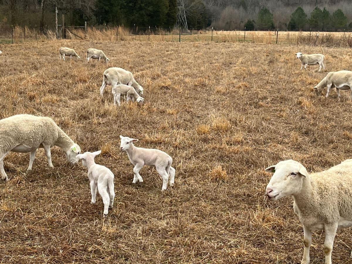 I went to the farm recently to check on the trees in the orchard and the sheep were close by. The two lambs in the foreground of this picture are but days old.