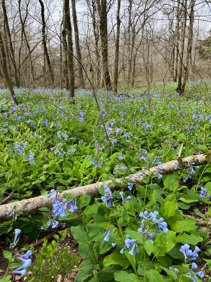 The combination of Virginia Bluebells, trilliums, Yellow Trout Lillies, and Dutchman's Breeches is a classic springtime ephemeral. They were all present in the woodland.