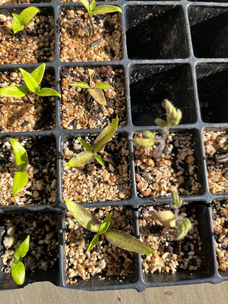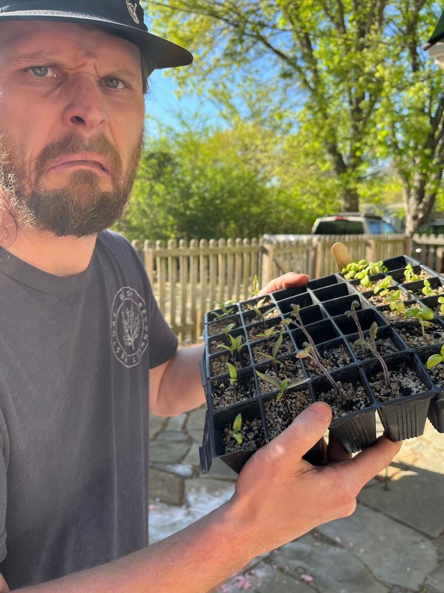 A disgruntled gardener and his pitiful seedlings. One variable I've yet to mention is that it's been MORGAN raising these seedlings. It would be funny if I run the trials and all of the seedlings turn out great.