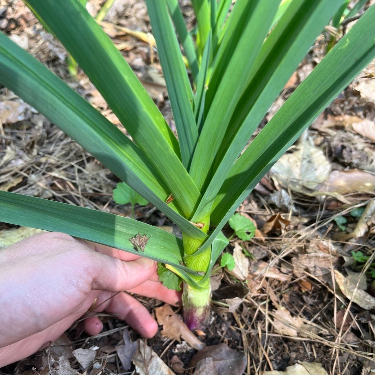 Garlic growing well. This is one of the bigger ones.