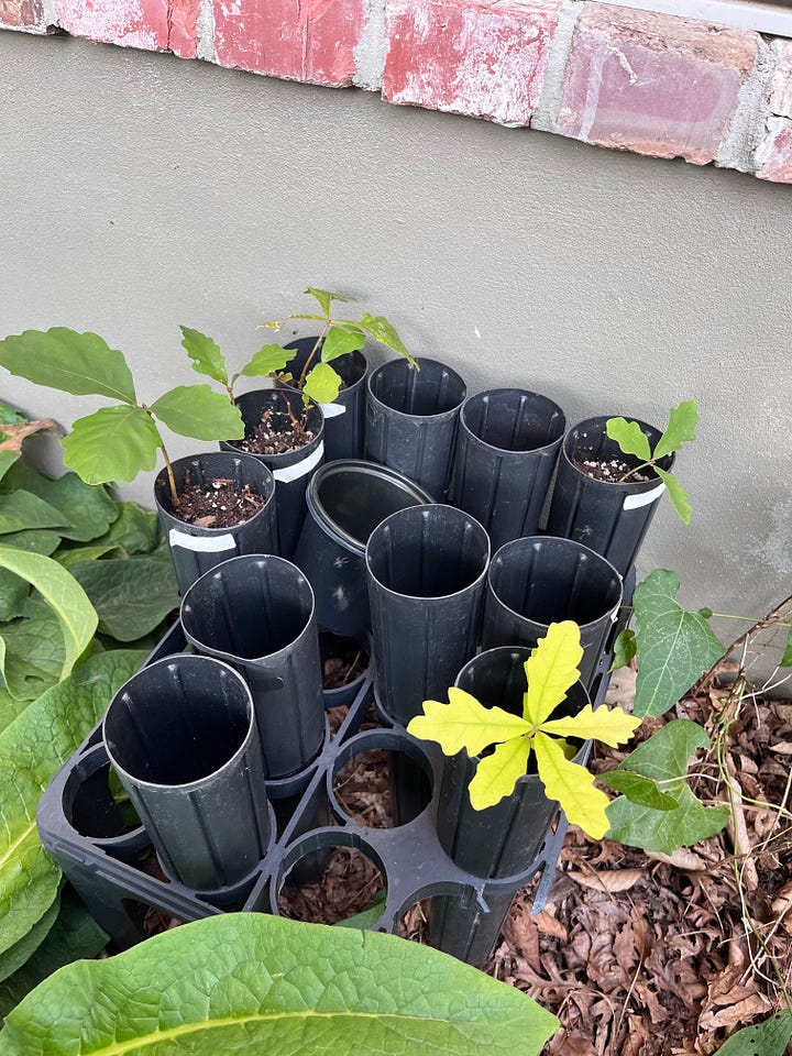 It has been four months now and what is clear is that seedling growth stalls at about 4 inches after putting on 3-4 leaves - regardless of whether it has been planted outside. The unplanted acorn seedlings still in tubes at our house look good and will be ready for planting this fall. The seedlings that were planted out in early spring also look good. Some are better than others. Japanese beetles ravaged a couple, but they bounced back nicely. However, I think moving forward I will wait to plant tree seedlings until the fall. The reason is they are more easily watched and protected. If they aren’t going to grow or benefit from being planted out earlier, then you might as well wait.