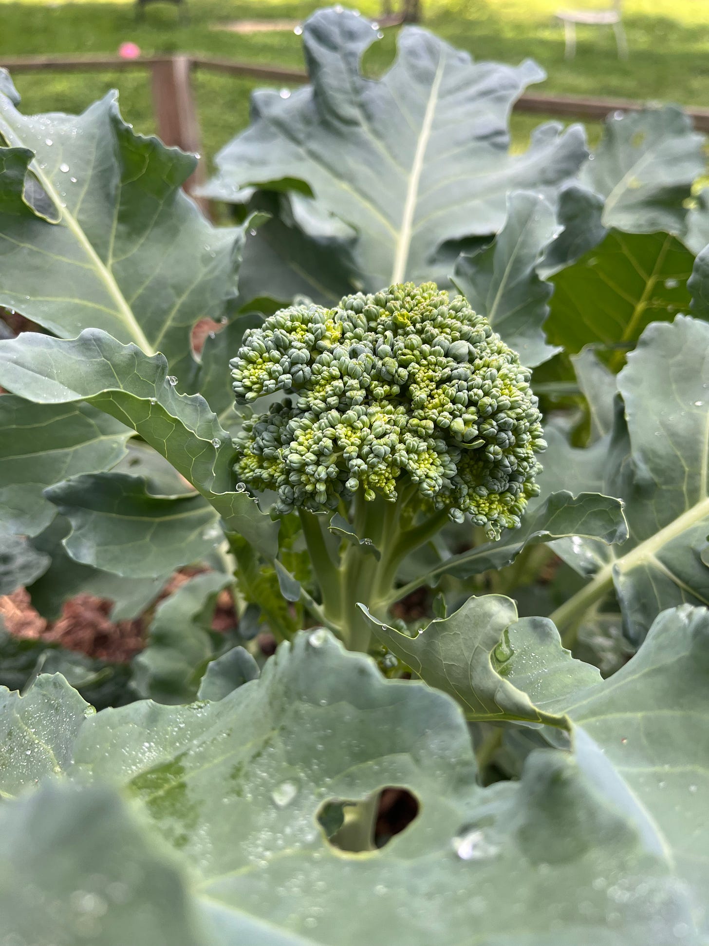 But this year, we decided to grow some broccoli and cabbage in the spring, along with our favorite kale variety. And they did great. They weren’t buggy and they were producing heads nicely. We did have a nice spring with moderate temperatures. We also live in North Alabama, zone 7b, or on some maps, on the northern edge of zone 8. We planted our seedling transplants in early March. By early May, we had crowns forming. The plants weren’t buggy, didn’t look stressed, and were performing beautifully, to my surprise.