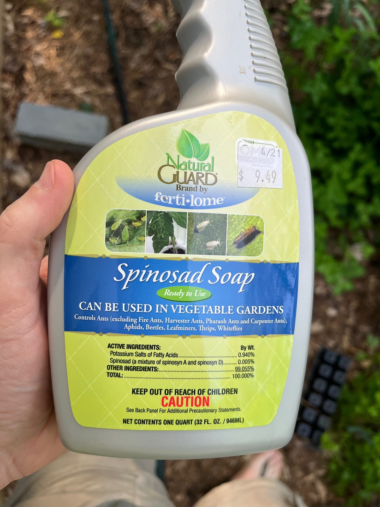 Some critter was eating my peppers and okra. So, for the first time this year, I pulled out the spinosad soap. I use it very sparingly, but when I do, it gets the job done. It's also nice that it is approved for use by organic certified farmers. If you are looking for a good organic pest control that won't hurt your pollinators, give spinosad soap a try. I use it to repel all kinds of critters, including pill bugs, aphids, and even powdery mildew if it pops up in the garden.