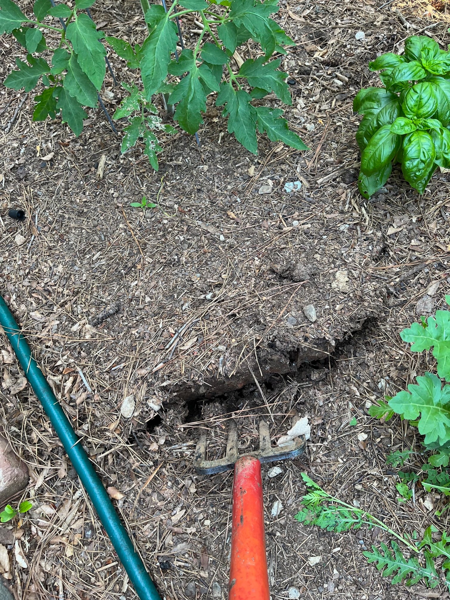 The other activity I mentioned is aerating your soil. To do this, you will need a garden fork. You will npierce the soil and push back on the top of the handle of the fork. The top of the soil behind the fork becomes the fulcrum, and you slowly raise the soil in front of the fork. You don't want to flip the soil or totally dislodge it. I usually raise it 4 to 6 inches and then lay it back down. Sometimes, if the raised soil doesn't sit back down completely, I will lightly tamp it down with my feet. The idea here is to break up any compaction without inverting the soil. This allows airflow and better water penetration without decimating the soil biology, bringing weed seeds to the surface, or creating a hardpan (of which tilling does all three).