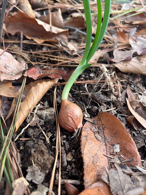 This last dip into the mid 20’s had me worried. Majority of my onion bulbs are sitting on top of the ground. I had them covered but they weren’t mulched in. I was afraid the bulbs, being a bit exposed as they were, might freeze. They didn’t! Now I will take some old straw and bury them pretty deep to protect them during this winter.