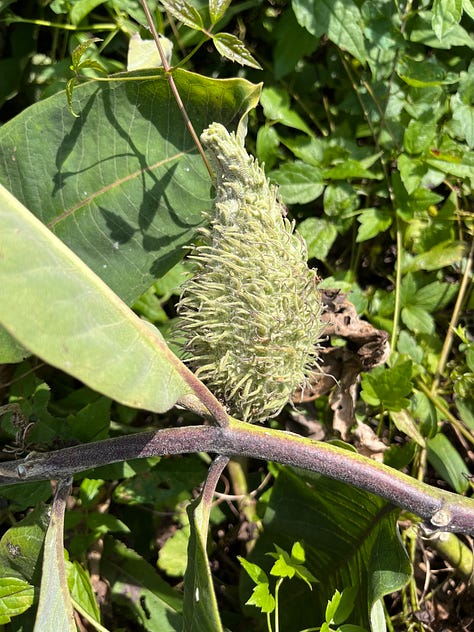 Some flowers develop seeds in pods. Milkweed is a good example. After the flowers fade, the plant will begin developing a seed pod. Once dry, the pod will be full of seeds.